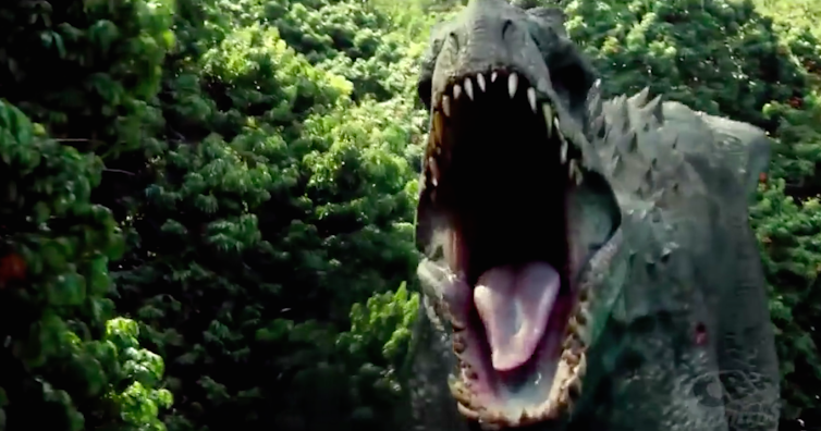 This is entertainment. They make it very clear that the dinosaurs they feature are movie monsters quite unlike anything that actually lived during the Jurassic period. The film’s villain, Indominus rex, is a genetic mash-up of tyrannosaur and raptor and all kinds of other stuff. To even begin talking about this creature’s scientific accuracy would be like a bat specialist discussing the fine points of Batman’s anatomy and biomechanics.