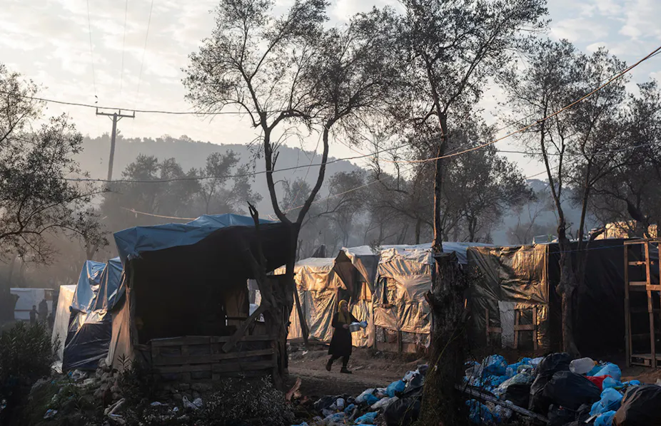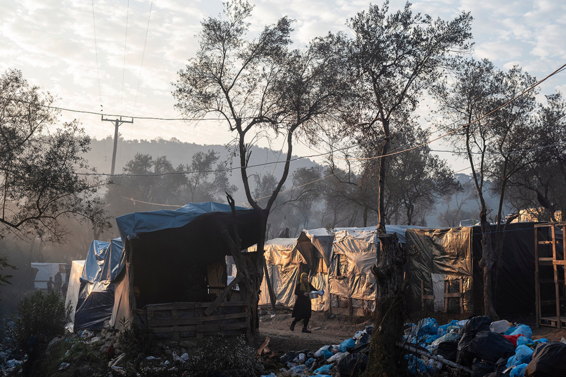 L’arrivée du virus en Europe a coïncidé avec un pic de tension maximale dans les cinq îles grecques de la mer Égée qui abritent au total près de 42 000 demandeurs d’asile. Les milliers de migrants amassés dans et autour du camp de Mória, le principal hotspot sur l’île de Lesbos, et dans les autres centres ont vu leurs conditions de vie déjà terribles s’aggraver fortement.