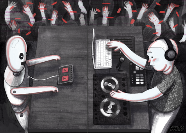 Thinking about art forms leads naturally to another question: who is the artist? Is the person who writes the computer code that creates sonnets a poet? Is the programmer of an algorithm to generate short stories a writer? Is the coder of a music-mixing machine a DJ?