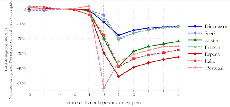 En un artículo reciente, hemos analizado esta cuestión utilizando datos de siete países europeos que abarcan tres décadas de pérdidas de empleos. Nuestra principal conclusión es que perder el empleo tiene implicaciones muy diferentes en diversas dimensiones del mercado de trabajo en Europa.