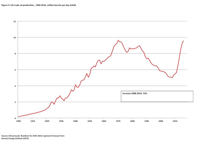 Oil price rises over the past 40 years have been truly spectacular, but the recent fall is probably here to stay, thanks to increasing production. We discuss these trends in our new book, The Price of Oil, published this month.