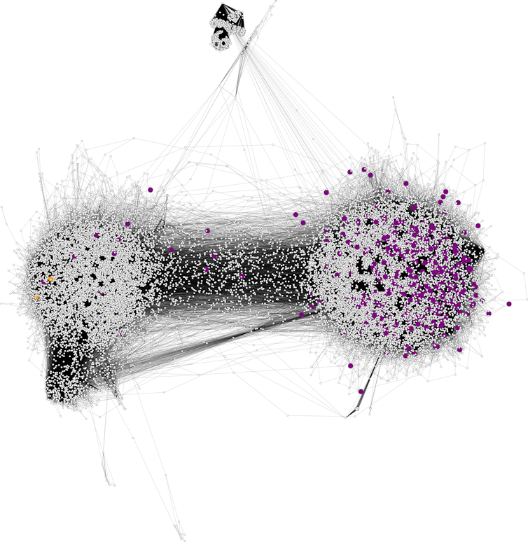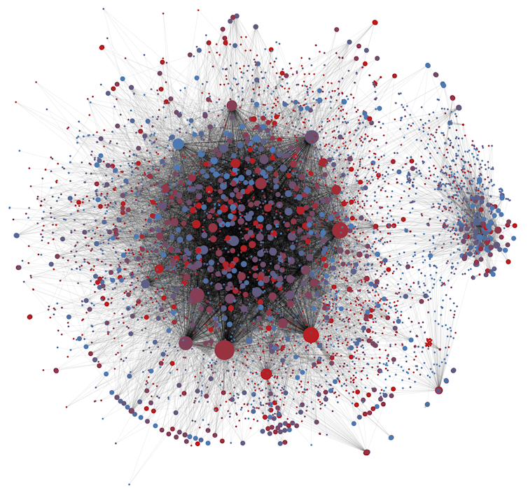 Our lab got a personal lesson in this when our own research project became the subject of a vicious misinformation campaign in the run-up to the 2014 U.S. midterm elections. When we investigated what was happening, we found fake news stories about our research being predominantly shared by Twitter users within one partisan echo chamber, a large and homogeneous community of politically active users. These people were quick to retweet and impervious to debunking information.