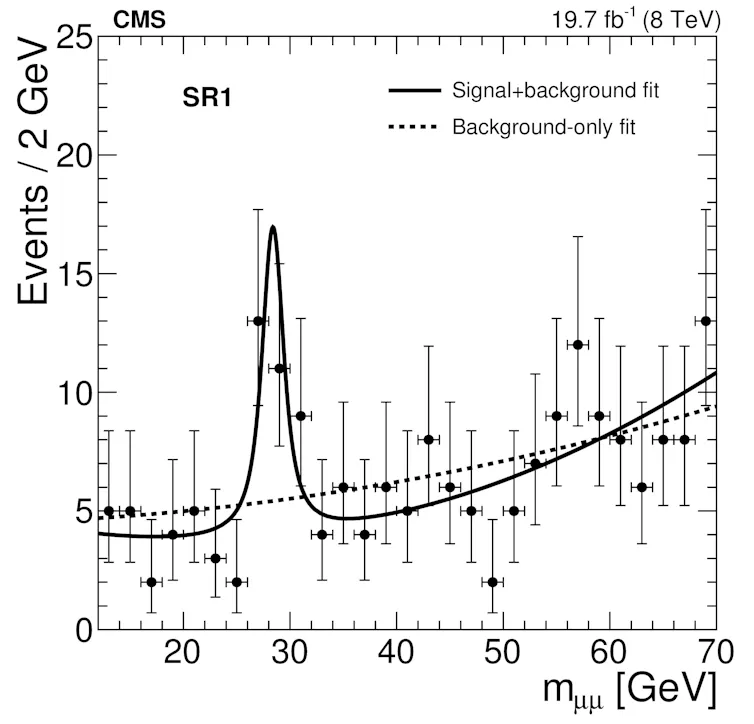 The new finding comes from an experiment involving the CMS detector, which recorded a number of pairs of muons – well known and easily identified particles that are similar to electrons, but heavier. It analysed their energies and directions and asked: if this pair came from the decay of a single parent particle, what would the mass of that parent be?