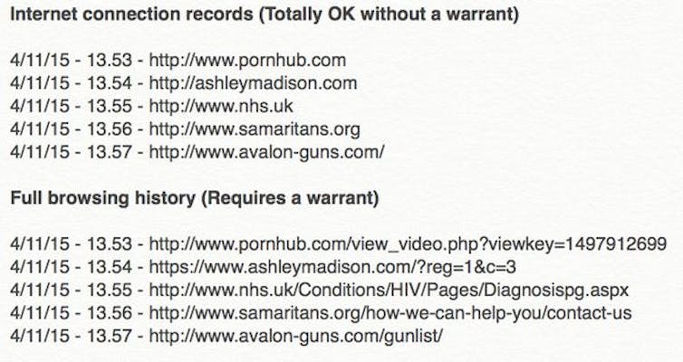 Access to the websites we visit, for an entire year, is not at all comparable to having an itemised telephone bill. It’s more equivalent to tailing someone as they visit the shops, the pub, the cinema, listen to the radio, go to the park and on holiday, read books and magazines and newspapers, and much more.
