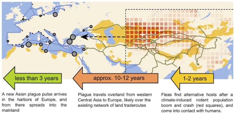This followed a pattern that we associate with current-day plague outbreaks. What is the implication of such a finding? In terms of our understanding of the past plague pandemics, it provides a different perspective as to how the disease moved across Eurasia, driven by climate events that were and still are frequently occurring.