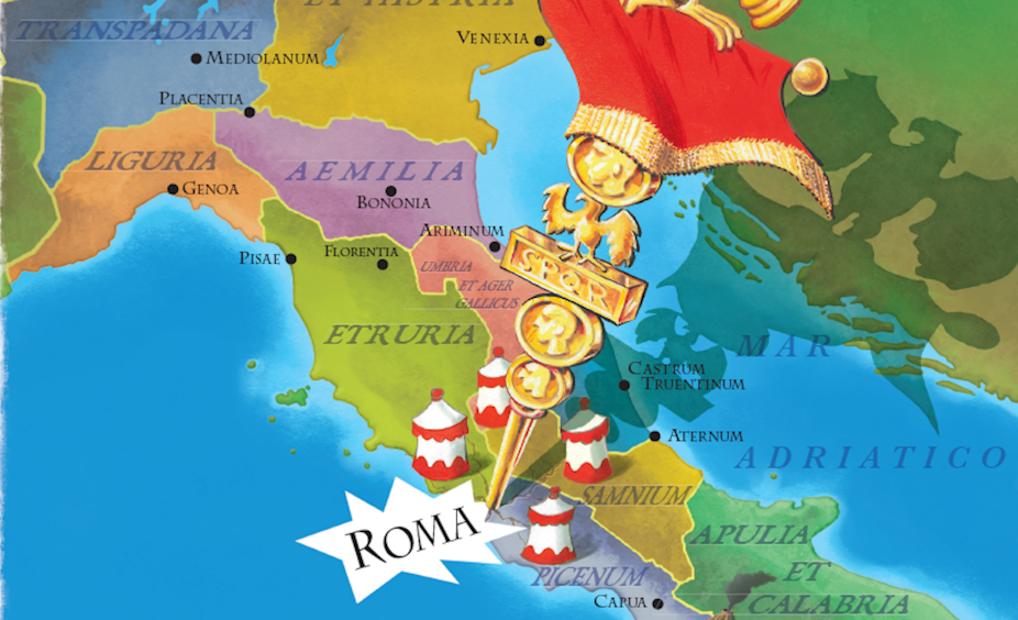 Il s’agit de créer un Empire et de l’agrandir en conquérant diverses provinces, tout en s’appuyant sur la religion et la diplomatie. Le joueur gère sa propre faction romaine. On remarque au passage que les créateurs du jeu ont mené de vraies recherches historiques : on y trouve, en effet, la mention des grandes familles romaines comme les Brutii ou les Iulii. Provinces et royaumes de l’époque, comme la Numidie ou l’Empire des Parthes, correspondent aussi à la réalité antique.