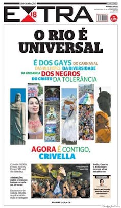 “Rio is universal. It’s about: gay people, Carnaval, women, diversity, umbanda, black people, Christ, tolerance. And now it’s yours, Crivella.”