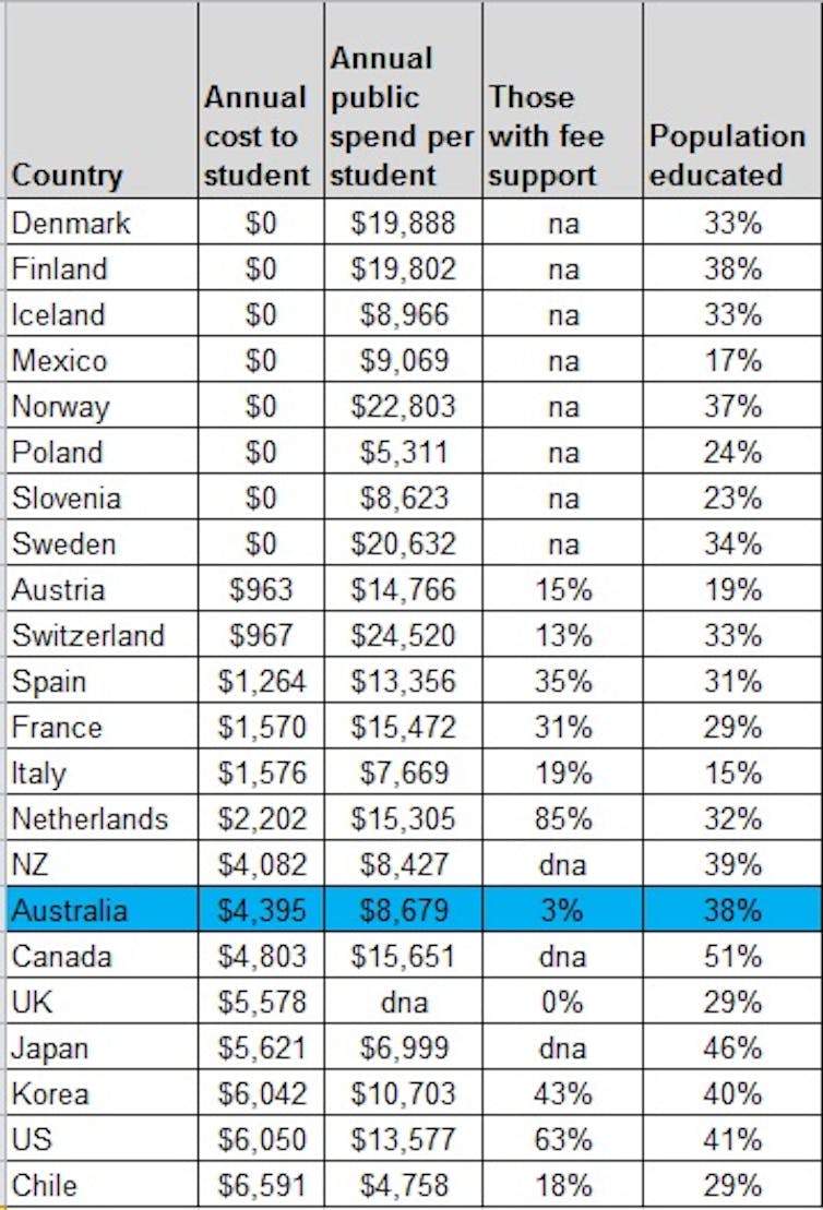 While this data shows it is possible for a government to provide free, quality, mass higher education, it also suggests higher rates of participation are only possible with a co-contribution from the student to offset the cost of providing more places. In Australia’s case the government could be contributing more and the student less.