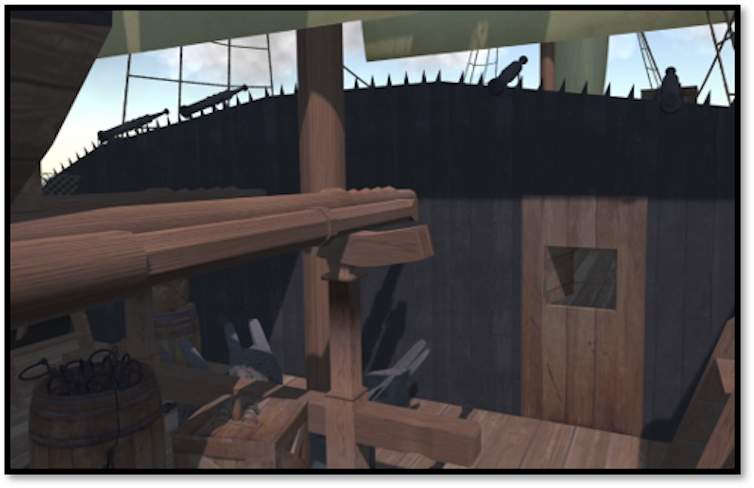 The 3D video shows why these rebellions almost always ended in failure. The security features built into ships such as L'Aurore were highly effective at halting insurrections. Enslaved men were chained, preventing them from reaching the crew behind the barricado, a nine-foot wooden wall across the main deck. Crewmen atop this wall could fire upon rebellious captives with swivel guns, muskets and cannon. Escaping over the sides was also difficult, because of the netting that crewmen strung up around the vessel.