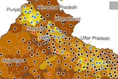 The highest NDA scores remain concentrated in a few states of western and northern India, the coalition having in particular gained all the seats in a single regional block, stretching from Himachal Pradesh, Haryana and Uttarkhand in the northwest to Rajasthan and Gujarat.