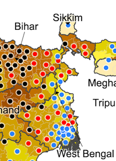 This stable and regular distribution of voting behaviour contradicts the proverbial volatility of India’s regional politics last illustrated in 2018, when the BJP lost the local elections in Chhattisgarh, Madhya Pradesh and Rajasthan. This geographic structure also demonstrates that these spatial patterns owe less to the vagaries of local political coalitions and candidates than suggested by media reports.