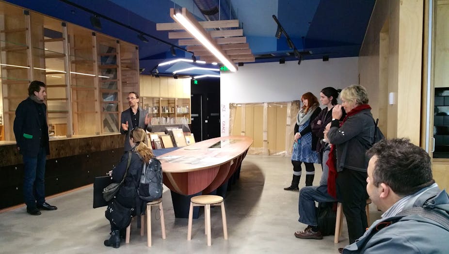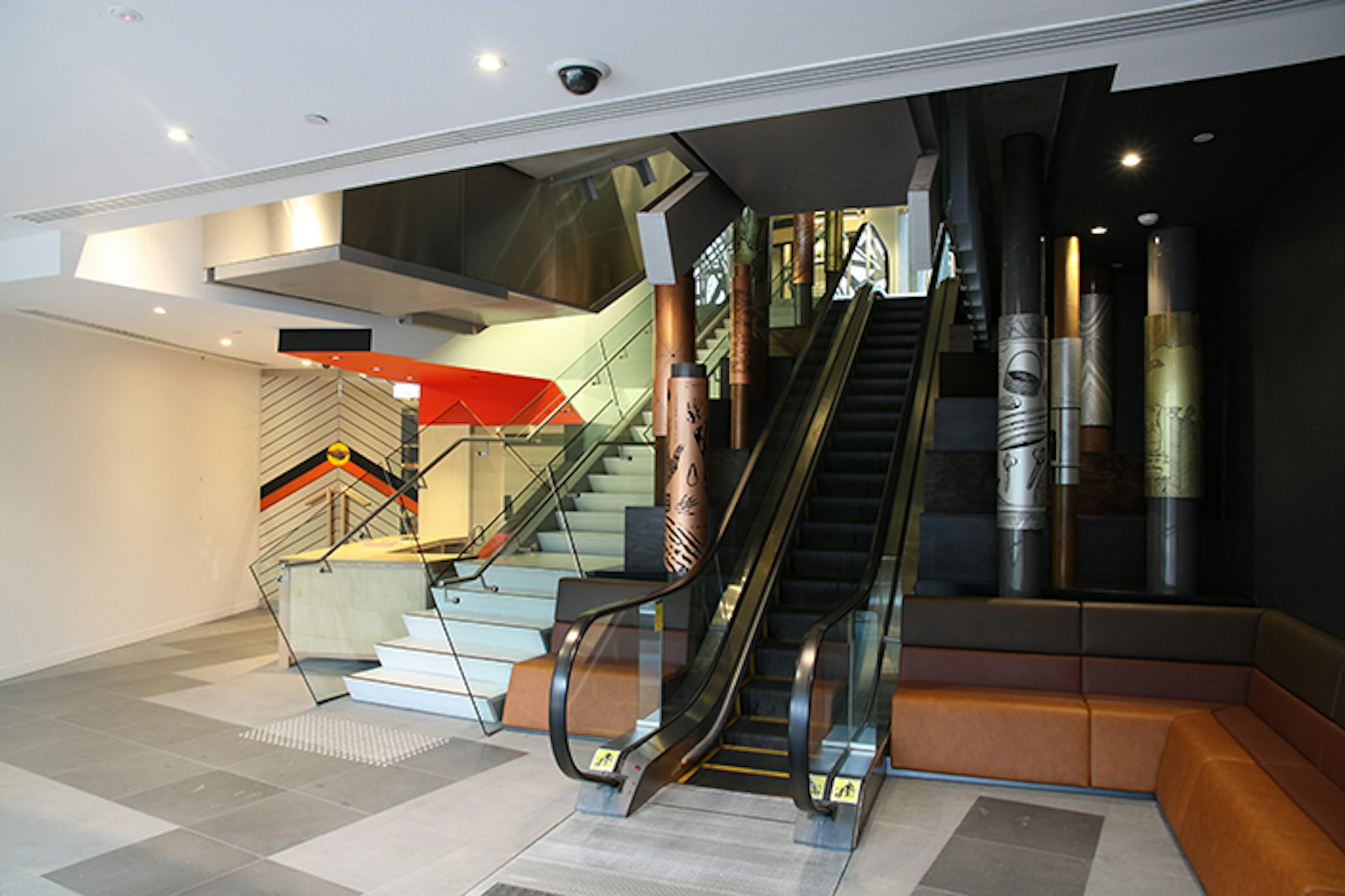When one enters the foyer of new Koorie Heritage Trust’s place, the seating on the first level indicates that here is a different kind of engagement with visitors. Greenaway talks about the importance of providing a place for respite, where elders and children can sit down without having to buy a drink at a café and engage in exchange: