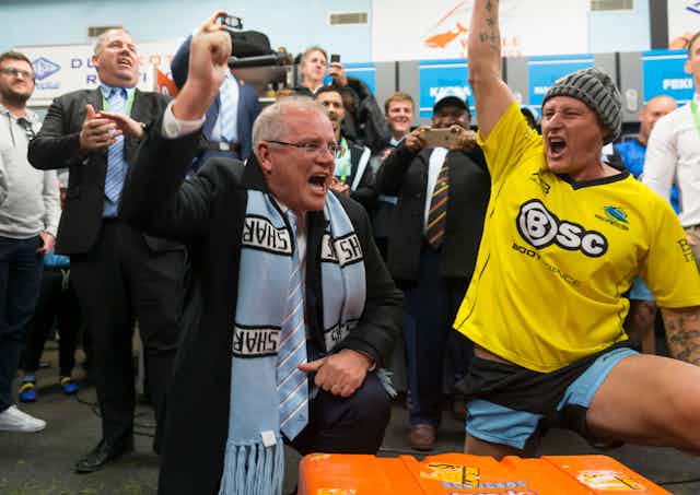 Scott Morrison, whose faux larrikinism is at the heart of Blaine’s essay, is a Rugby man who now pretends to be a League man. He picked up the Cronulla Sharks allegiance rather in the way Liberal National Party Senator from Queensland, Matt Canavan, has acquired a striking resemblance to a coal-miner (belying his university education and career in the public service, consulting and political advising).