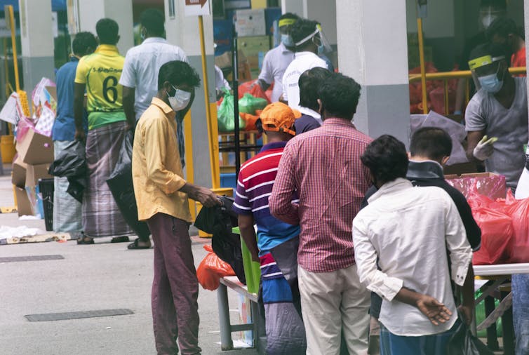 When the government issued face masks to all Singaporeans at the fist sign of COVID-19 in early February, migrant workers were excluded. (The philanthropic arm of a state investor later distributed more than 1 million masks to migrant workers and domestic helpers.)