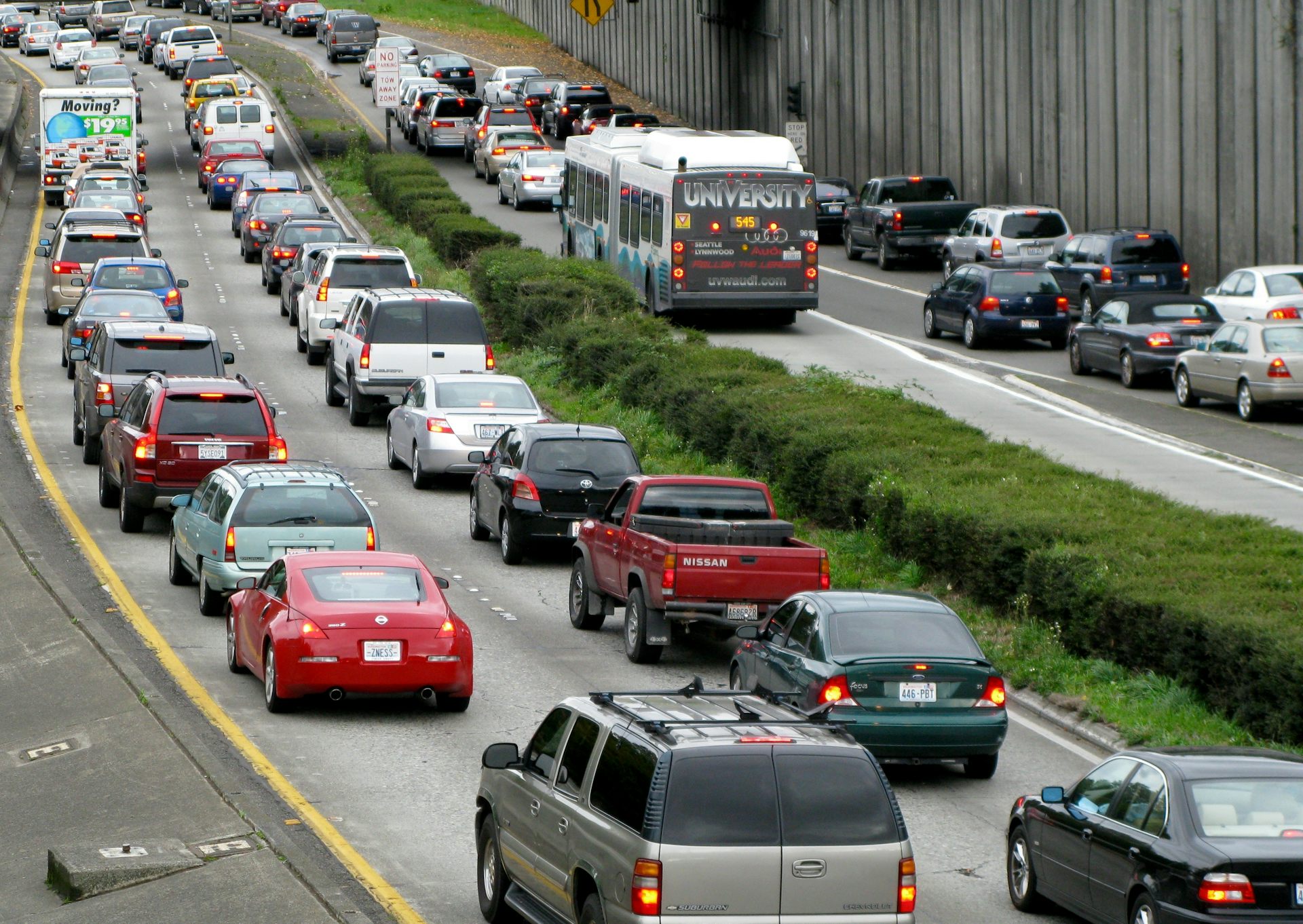 Commuters idle in rush-hour traffic outside Philadelphia.