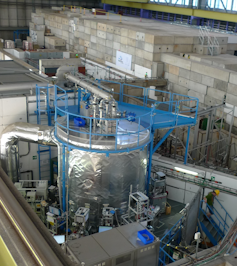 Much of the more recent progress in this area is thanks to the CLOUD experiment: a stainless steel cylinder, about three metres in diameter and three metres high. Gases are injected into the cylinder, where they react much as they would in the atmosphere and then stick together to make particles. State-of-the-art instruments count the gas molecules and particles in the chamber. We study how the number of new particles formed every second changes when we increase the amount of the sticky gases in the cylinder.
