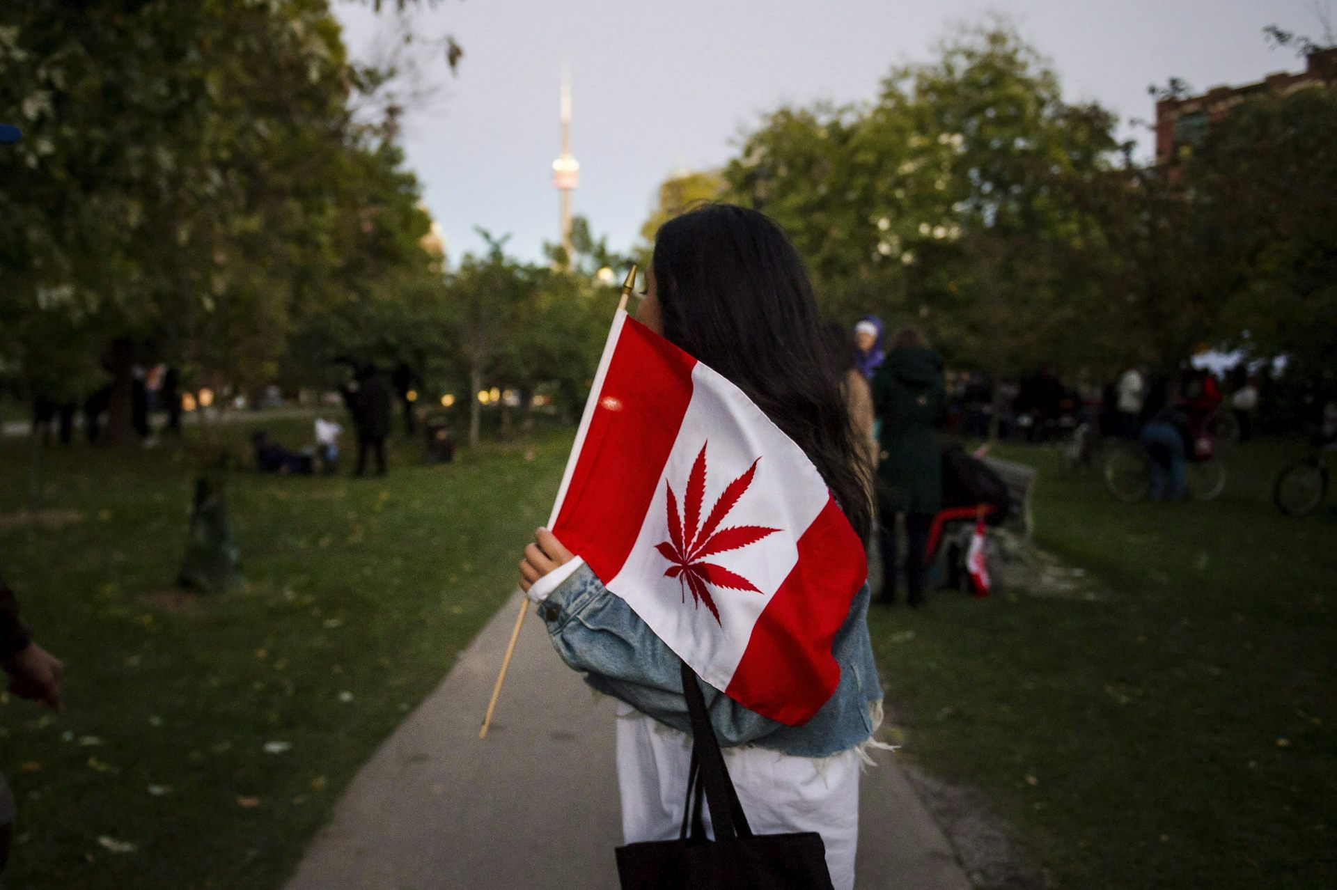 People gather in Trinity Bellwoods park for a weed bubble blowing event in Toronto on Oct. 17, 2018, the day cannabis became legal in Canada.