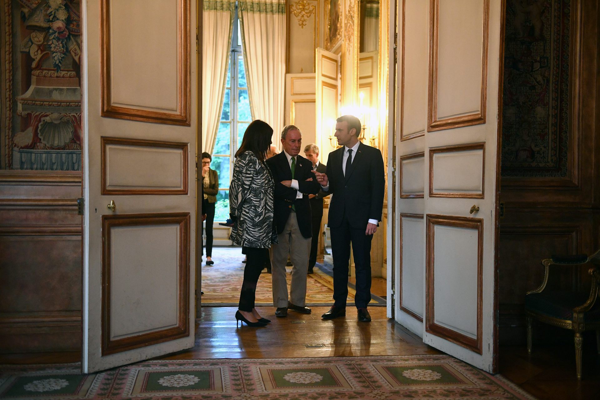 Climate crusaders: President Macron, right, with Paris Mayor Anne Hidalgo and former New York City mayor Michael Bloomberg after a June 2 meeting at the Elysee Palace, following the US withdrawal from the Paris agreement.