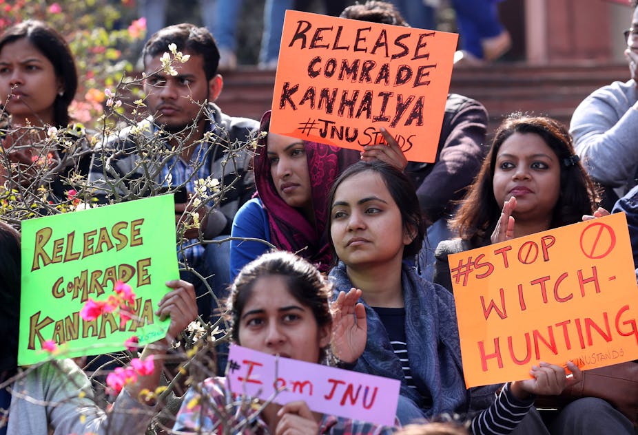 “Anti-JNU” protesters who assembled outside of the university gates and who attacked academics, students and journalists at Kumar’s court hearing, were organised by associations affiliated with the BJP: the Sangh Parivar, a family of religious and political organisations committed to a robustly, and exclusively, Hindu version of India – “Hindutva”.