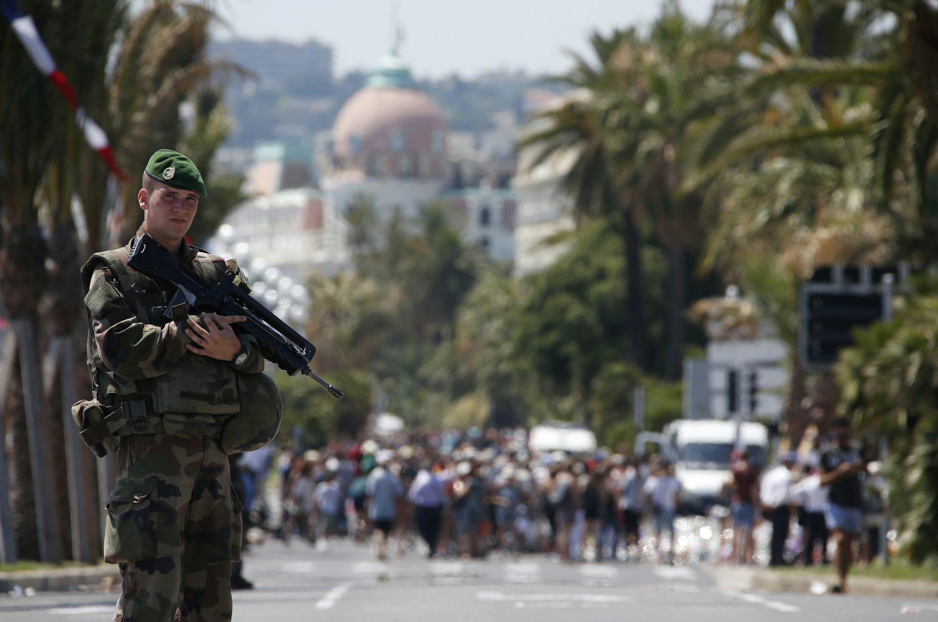 Soldiers patrol on the Promenade des Anglais in Nice, France, July 18, 2016.