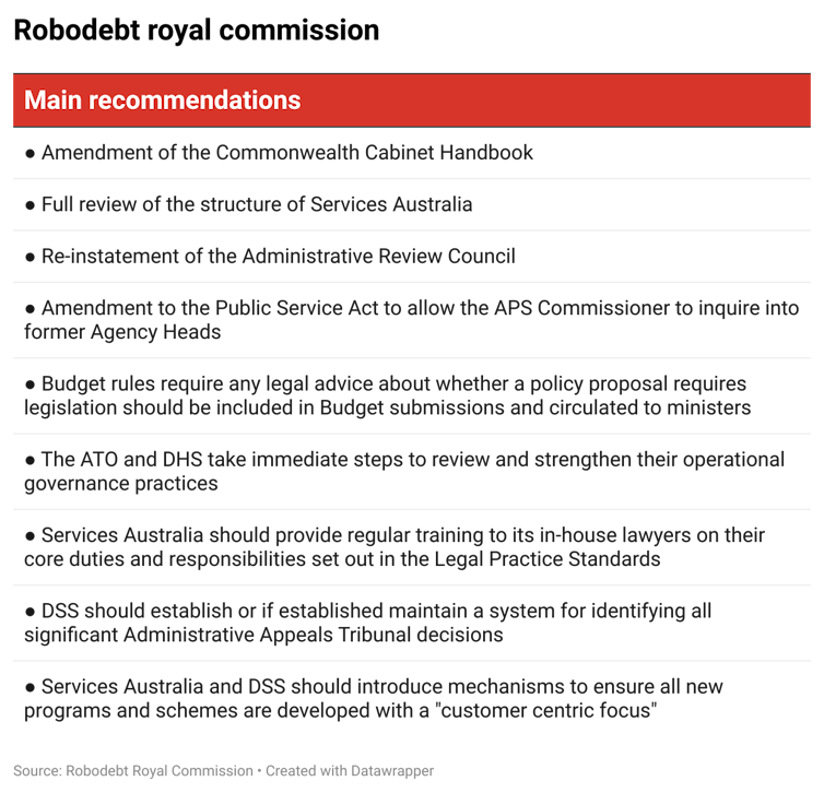 The report leans heavily into the importance of pursuing a deeper change in our political life. This reflects the arguments of advocates that even if it had been lawful, robodebt was still a scandal.