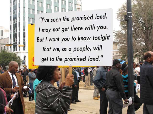 King compared the civil rights movement with the abolitionist movement, the populist movement of farmers and laborers in the late 19th century, and even to the American Revolution itself. The American ideal “all men are created equal” constituted what King called a “promissory note.” In each case, ordinary citizens demanded that that promise be honored. And through their actions, the nation was made more free and more just.