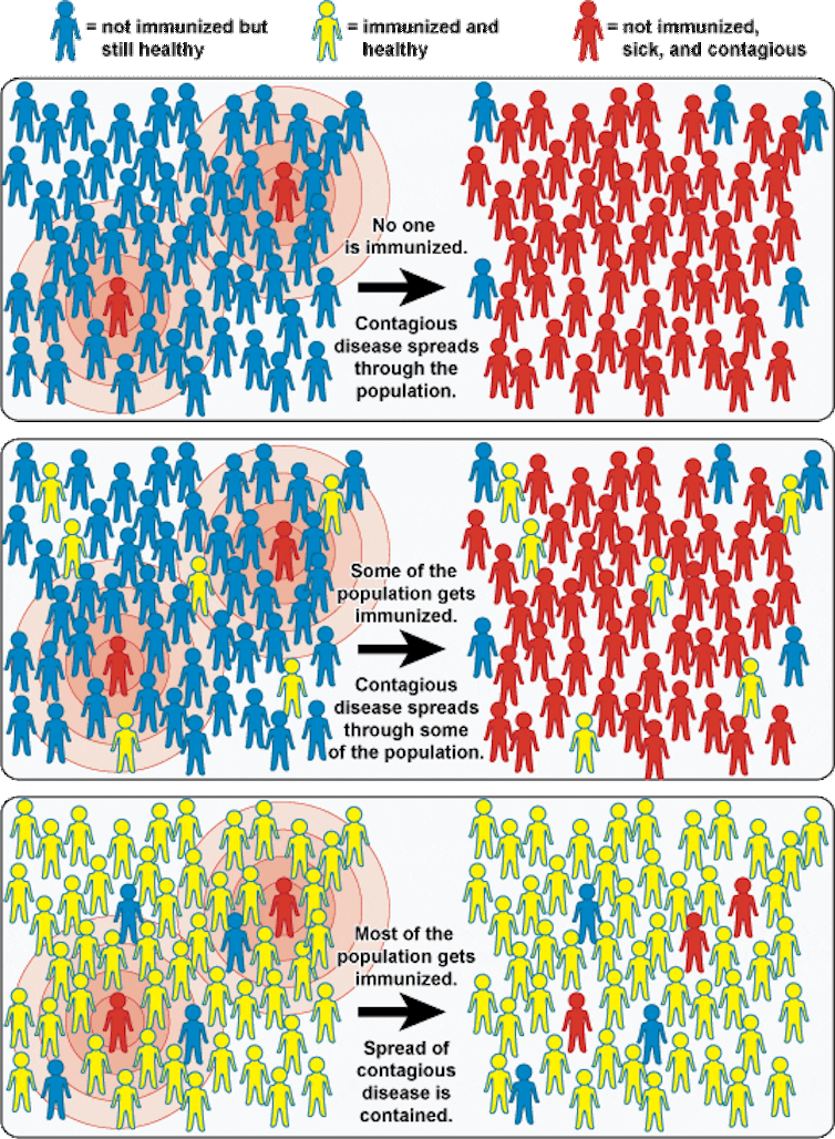 This is similar to how herd immunity works in preventing the spread of infectious diseases. Those who are strong enough to get vaccinated directly protect themselves from infection. They also indirectly shield vulnerable people who cannot be vaccinated.