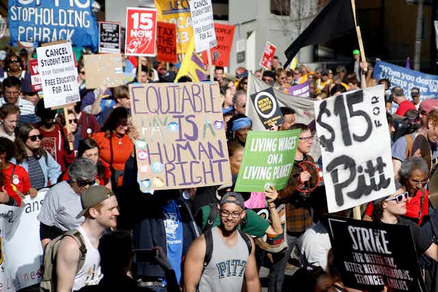 Recognizing these obstacles, unions are turning to new strategies for improving working conditions. Perhaps the best example is union support for a US$15 minimum wage that would primarily benefit workers who aren’t their members.