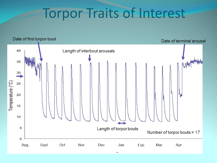 Hibernation is characterized by a significant drop in body temperature and metabolic function. This process is commonly called torpor. During torpor, body functions including heart rate, breathing rate, and brain activity are reduced. The overall benefit for the animal is saving metabolic energy at a time when it isn’t eating.